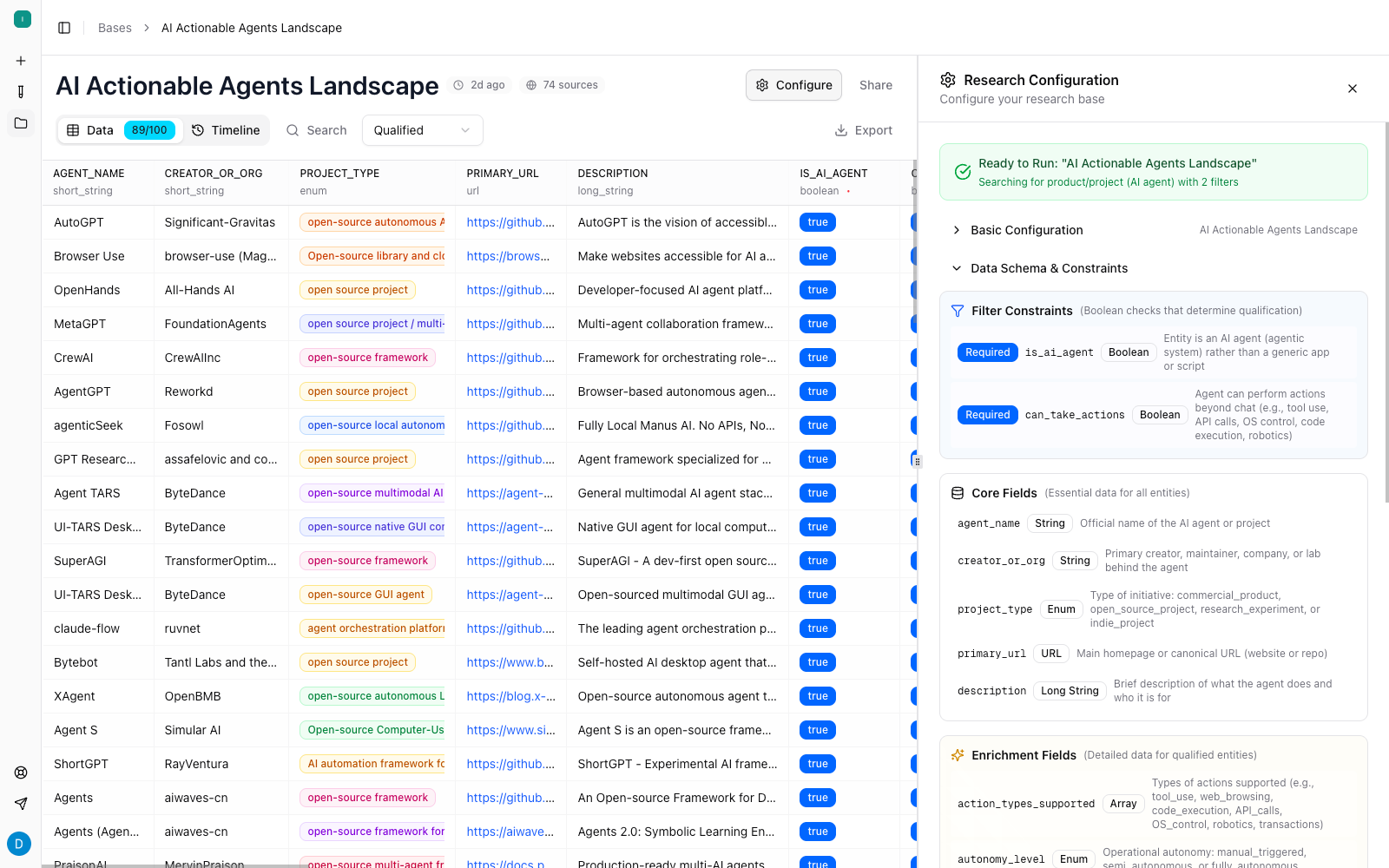 Describe what you want to monitor in plain English. We'll configure sources, extraction, and scheduling automatically.